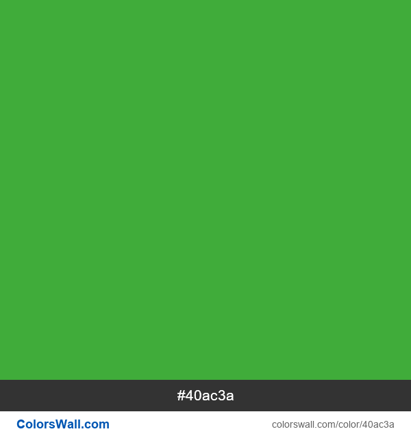 Codes and values information about the HEX color decimal, HEX. HSL, HSLA, RGB, RGBA values #40ac3a