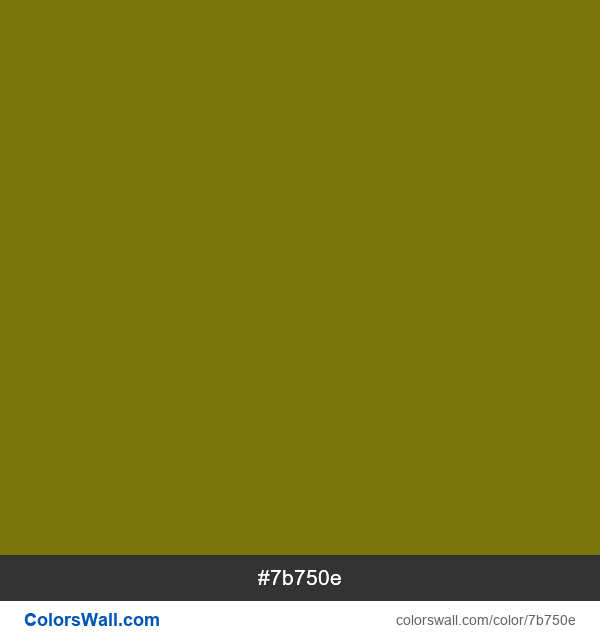 Codes and values information about the HEX color decimal, HEX. HSL, HSLA, RGB, RGBA values #7b750e