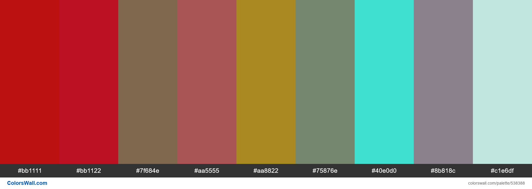 HEX: #bb1111, RGB: (187, 17, 17); HEX: #bb1122, RGB: (187, 17, 34); HEX: #7f684e, RGB: (127, 104, 78)