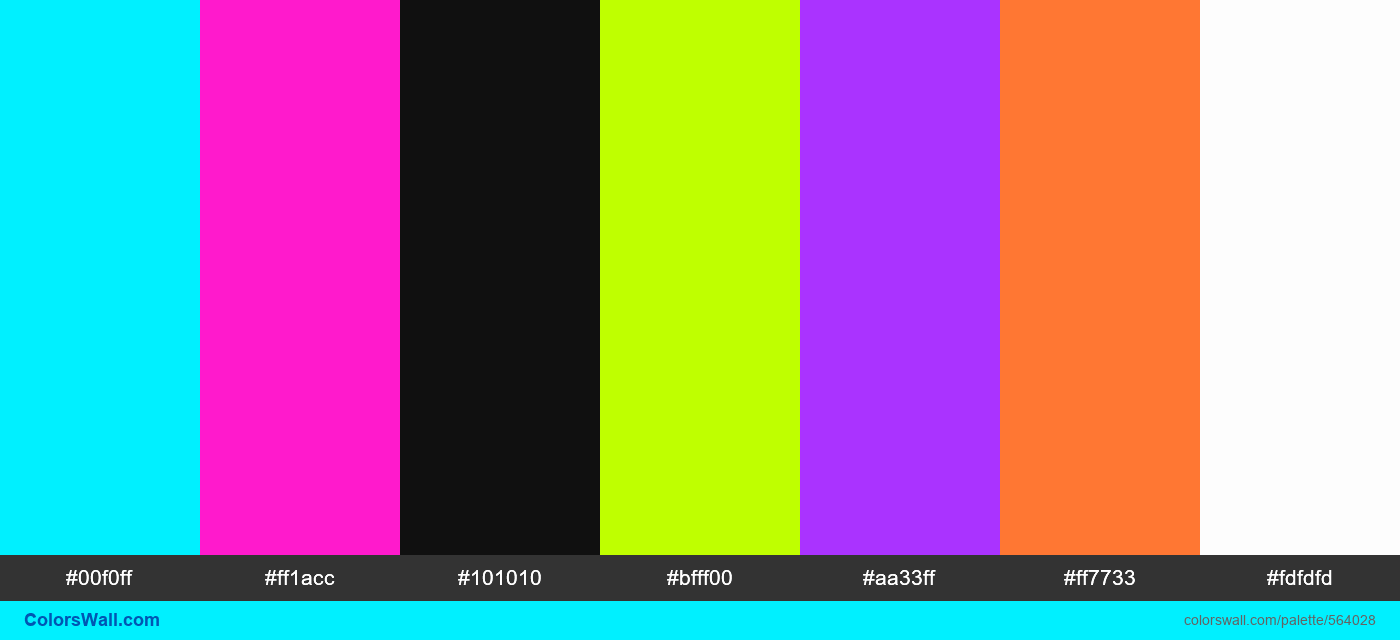 HEX: #00f0ff, RGB: (0, 240, 255); HEX: #ff1acc, RGB: (255, 26, 204); HEX: #101010, RGB: (16, 16, 16)
