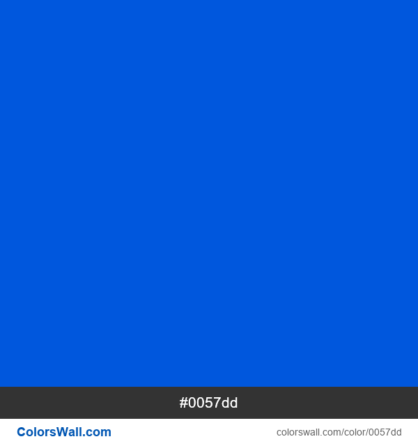 Informasi kode dan nilai tentang desimal warna HEX, HEX. Nilai HSL, HSLA, RGB, RGBA #0057dd