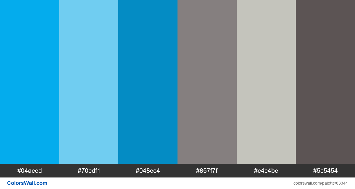 Paleta składa się z kolorów Światło, Półciemny. Kolory akcentujące #04aced i Mist Grey #c4c4bc. Paleta ma temperaturę kolorów Zimny, Neutralny.
