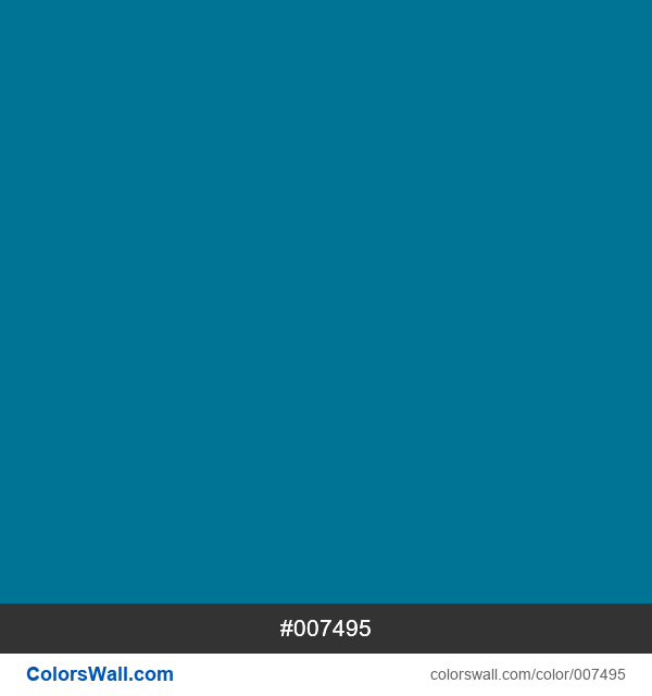 #007495 cor contém Vermelho 0%, Verde 45.49% e Azul 58.43%.