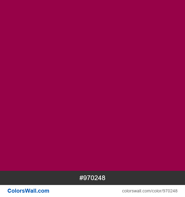 Informações de códigos e valores sobre o decimal de cor HEX, HEX. Valores HSL, HSLA, RGB, RGBA #970248