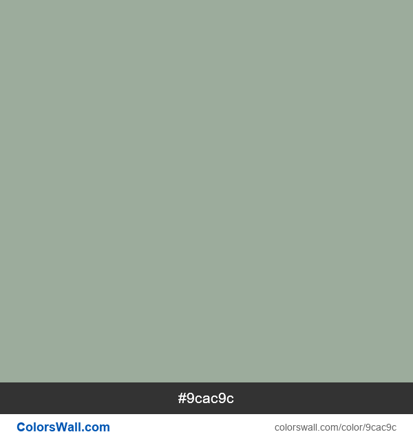 Informações de códigos e valores sobre o decimal de cor HEX, HEX. Valores HSL, HSLA, RGB, RGBA #9cac9c