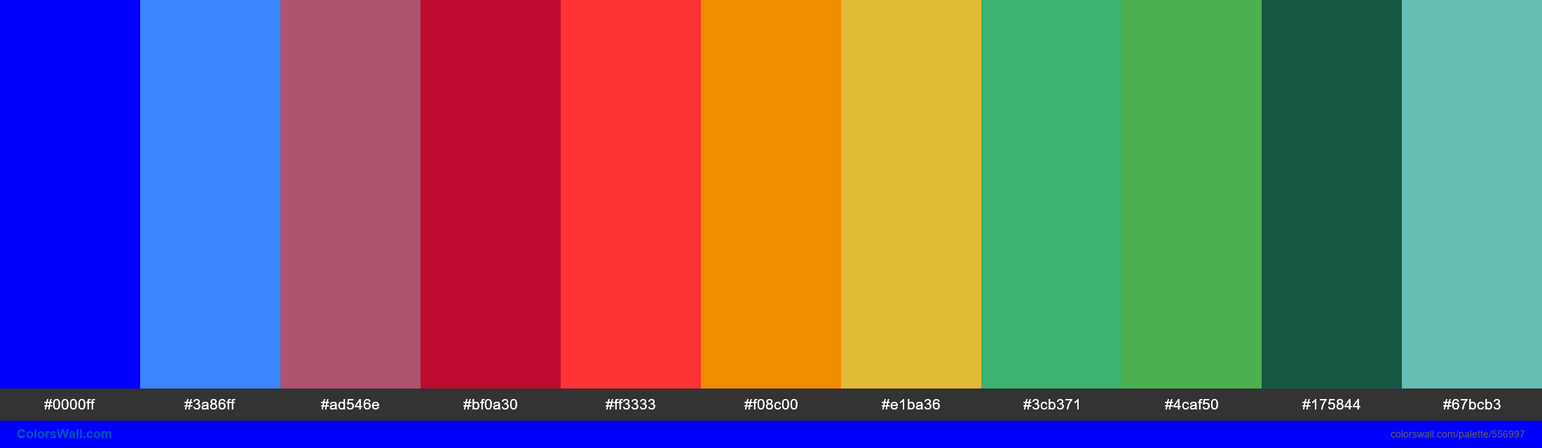 HEX: #0000ff, RGB: (0, 0, 255); HEX: #3a86ff, RGB: (58, 134, 255); HEX: #ad546e, RGB: (173, 84, 110)