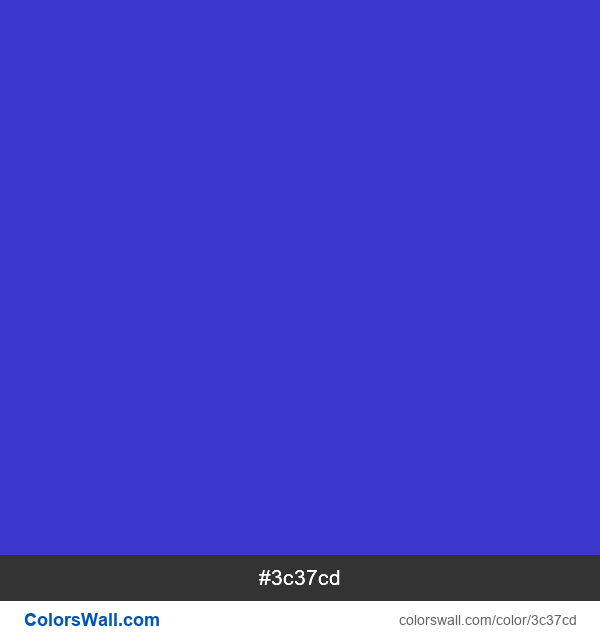 #3c37cd цвет содержит Красный 23.53%, Зеленый 21.57% да Синий 80.39%.