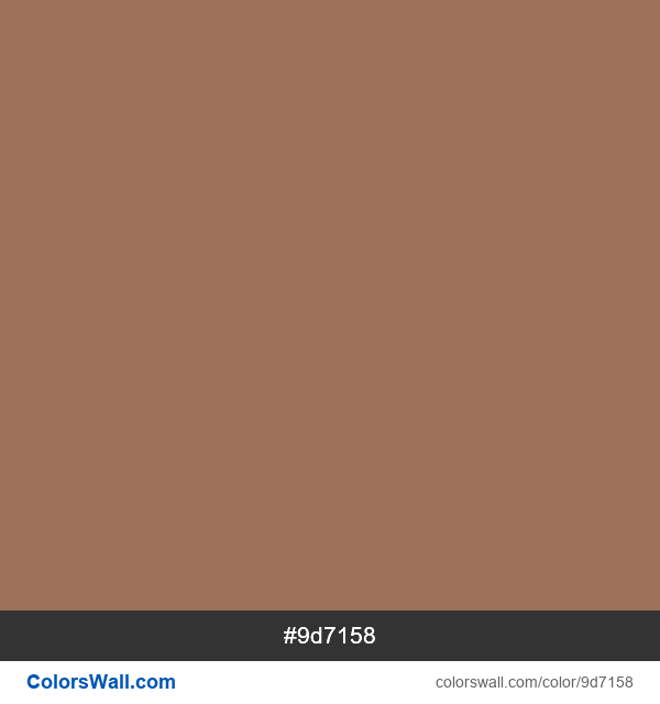 Інформація про коди та значення про шістнадцятковий десятковий колір, HEX. Значення HSL, HSLA, RGB, RGBA #9d7158